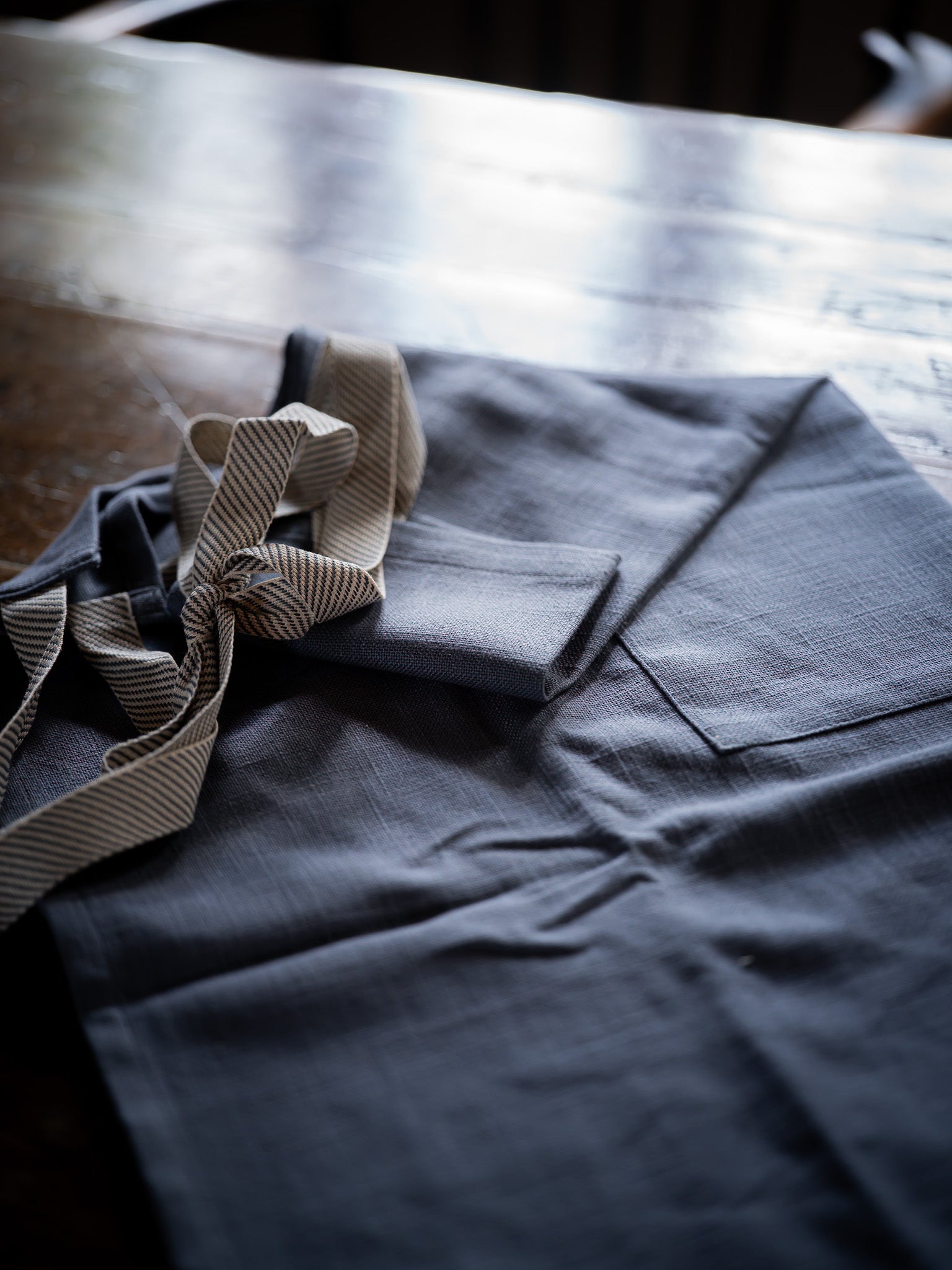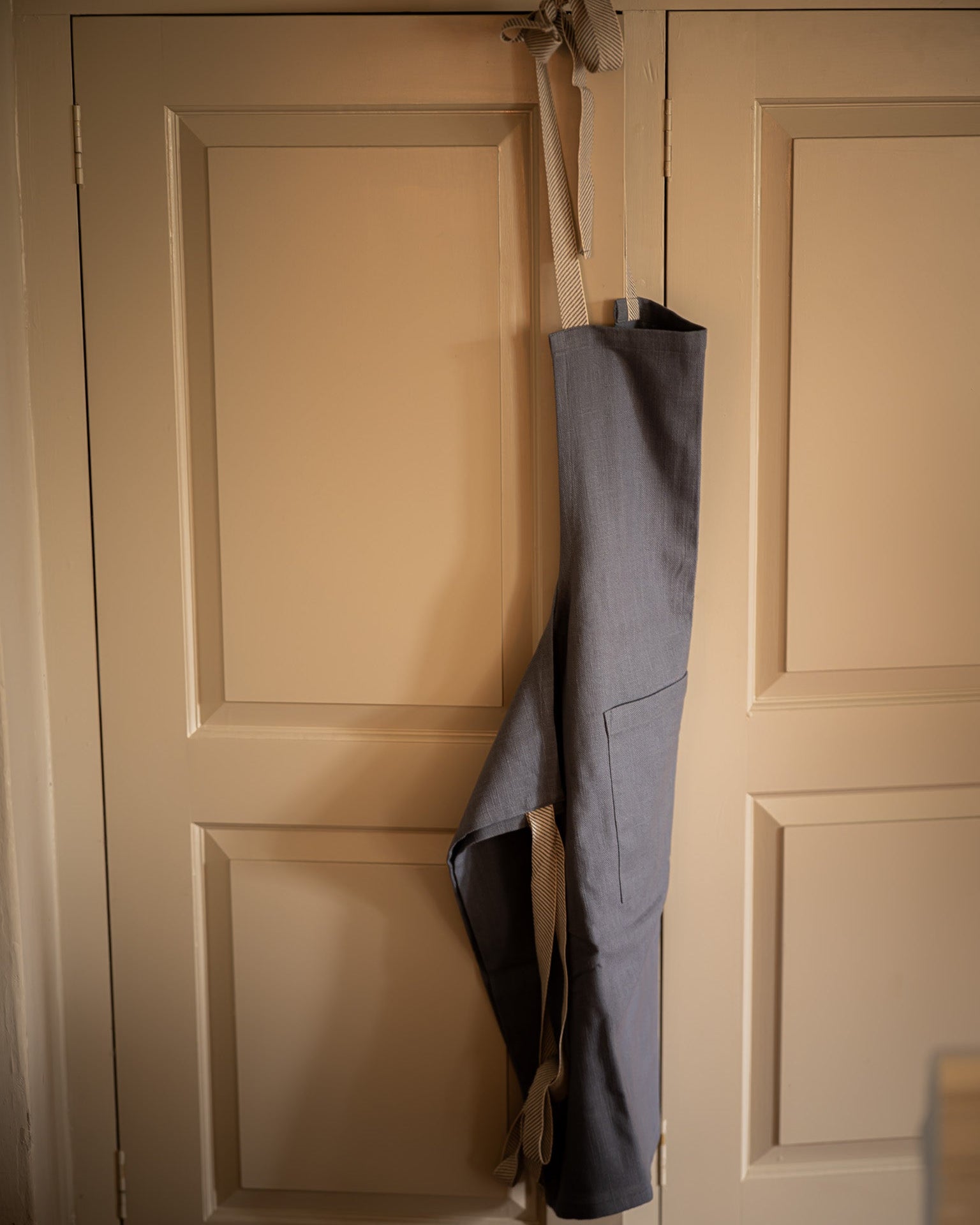 A classic style apron in a beautiful soft hue, finished with elegant herringbone ties. This design strikes the perfect balance - not too masculine or feminine.
