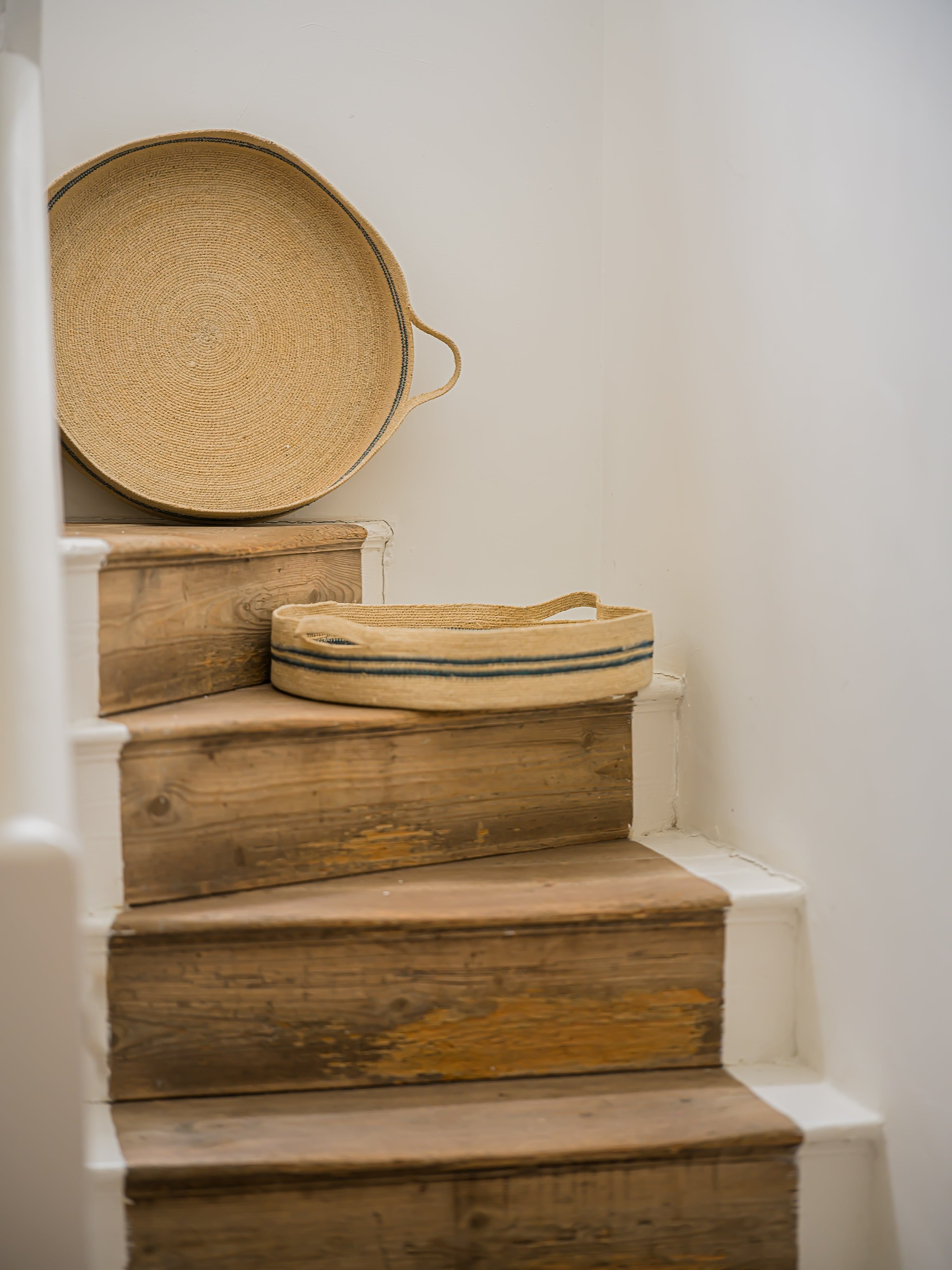 Woven from natural seagrass and finished with a double navy stripe, this set of trays offers a practical and versatile styling solution for the home. Each piece is handwoven, with natural variation in texture that highlights the character of the material.