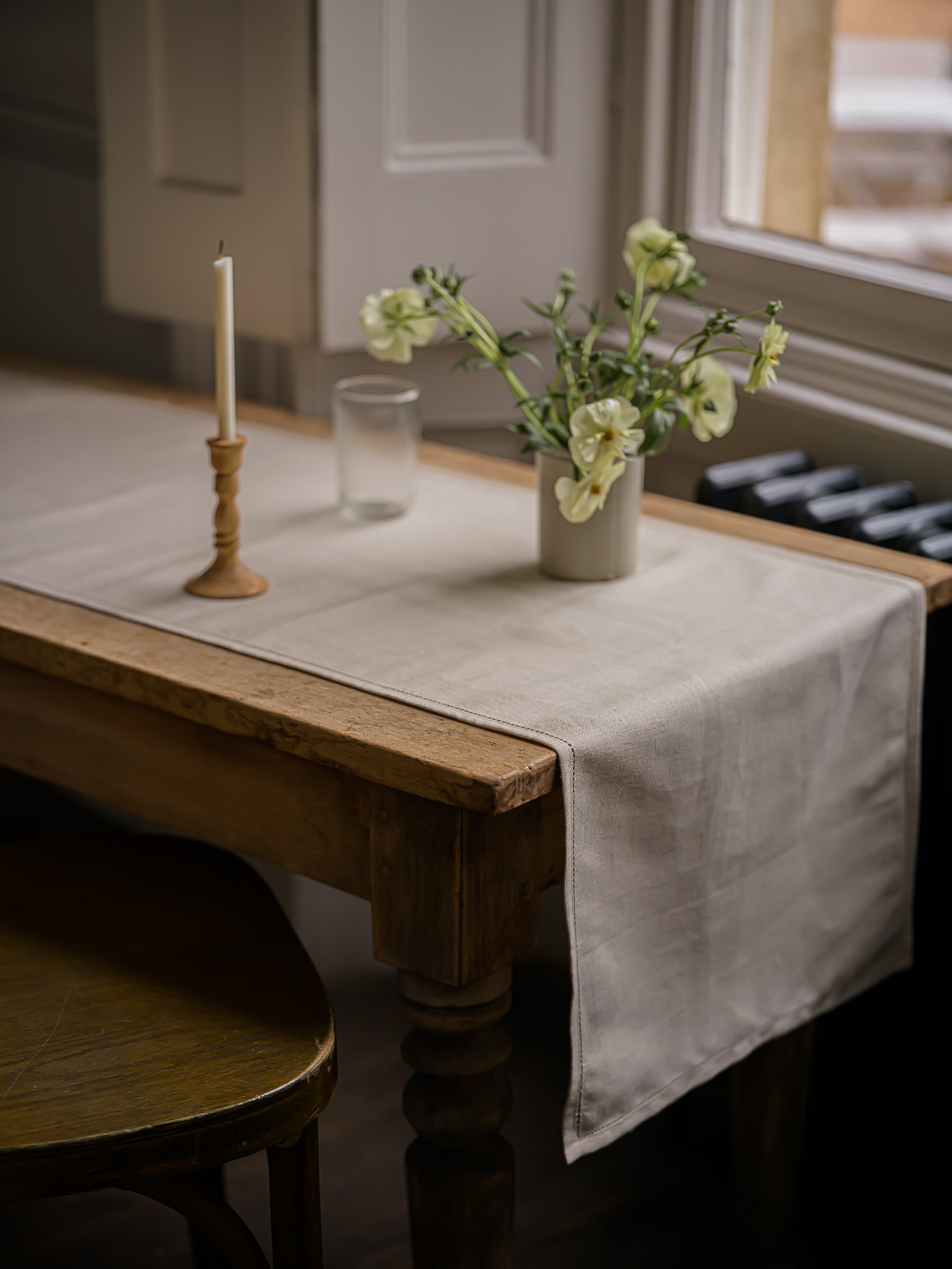 The soft tone and relaxed texture allow this runner to work easily across everyday dining and more considered occasions. It pairs well with simple ceramics and glassware, adding warmth without feeling overly decorative.