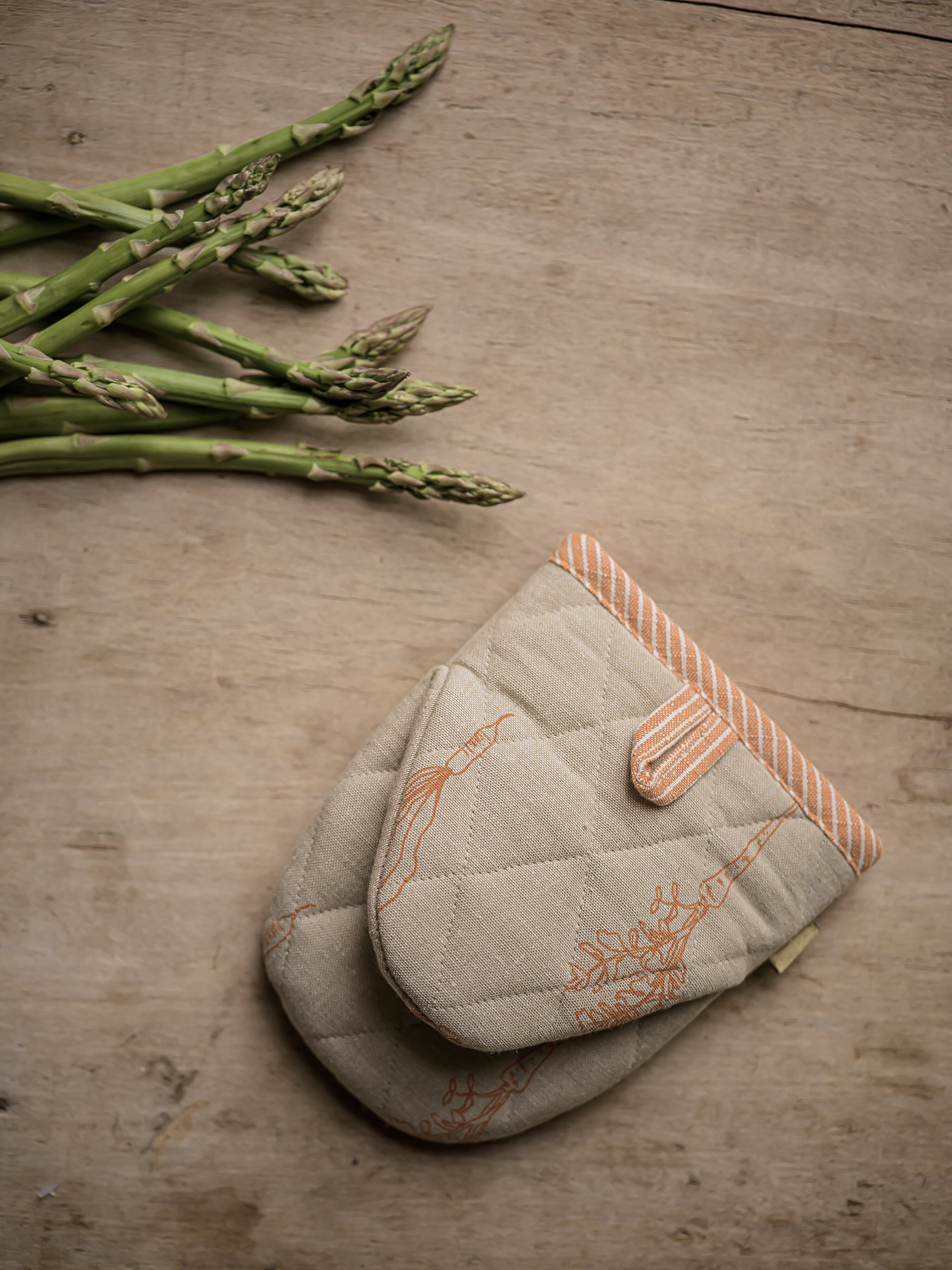 Made from cotton and featuring hand-drawn vegetable illustrations, this small oven glove brings warmth and colour to the kitchen. The playful designs celebrate everyday vegetables, with illustrations inspired by classic kitchen garden favourites.
